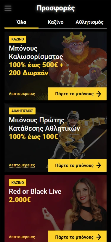 - Υποστήριξη μπόνους και προωθητικών ενεργειών: Όλες οι προσφορές που είναι διαθέσιμες στην έκδοση για υπολογιστή, ισχύουν και στην κινητή έκδοση.
